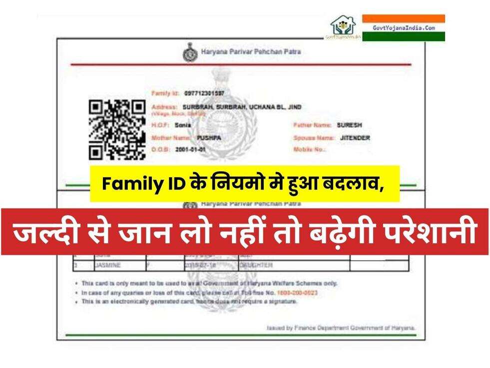 Haryana Family ID: हरियाणा सरकार ने फैमिली ID धारको को दिया झटका, किया गया Family ID के नियमो मे बदलाव, जल्दी से जान लो नहीं तो बढ़ेगी परेशानी