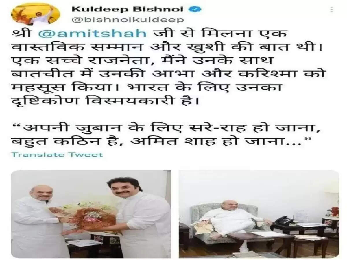 बिश्नोई ने अपने ट्विटर हैंडल पर लिखा कि अमित शाह से मिलना एक वास्तविक सम्मान और खुशी की बात थी. वे एक सच्चे राजनेता हैं. मैंने उनके साथ बातचीत में उनकी आभा और करिश्मा को महसूस किया. भारत के लिए उनका दृष्टिकोण विस्मयकारी है.