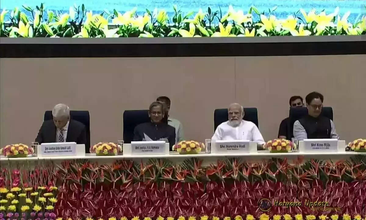 प्रधानमंत्री नरेंद्र मोदी ने अपने संबोधन में कहा, 'ये समय हमारी आजादी के अमृतकाल का समय है। ये समय उन संकल्पों का समय है जो अगले 25 वर्षों में देश को नई ऊंचाई पर ले जाएंगे। देश की इस अमृतयात्रा में व्यापार करने में आसानी और जीवन में आसानी की तरह ही न्याय की आसानी भी उतनी ही जरूरी है।' पीएम मोदी ने आगे कहा कि किसी भी समाज के लिए न्याय प्रणाली तक पहुंच जितनी जरूरी है, उतनी ही जरूरी न्याय वितरण प्रणाली भी है।