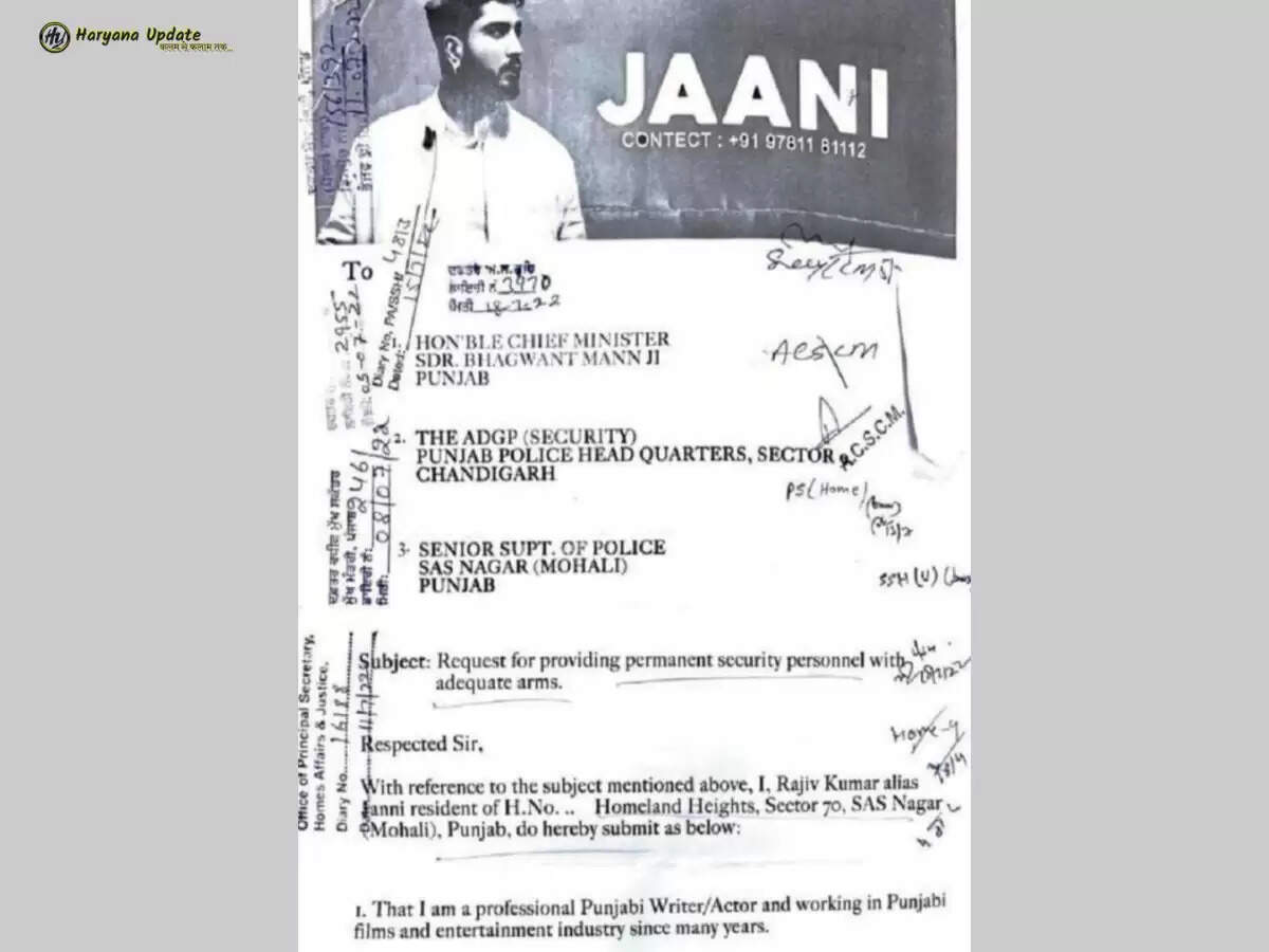 Haryana Update: Singer Jaani receive death threats: Punjabi singer-songwriter Jaani Johan) को जान से मारने की धमकी मिली है।इस पत्र में गायक ने दावा किया कि उसे गैंगस्टरों से जान से मारने की धमकी मिली थी और उन्होंने पंजाब के सीएम, एडीजीपी और एसएसपी मोहाली से अपनी सुरक्षा बढ़ाने का अनुरोध किया था।