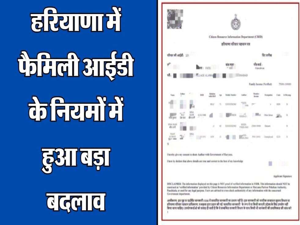 Family ID: हरियाणा में फैमिली आईडी के नियमों में हुआ बड़ा बदलाव
