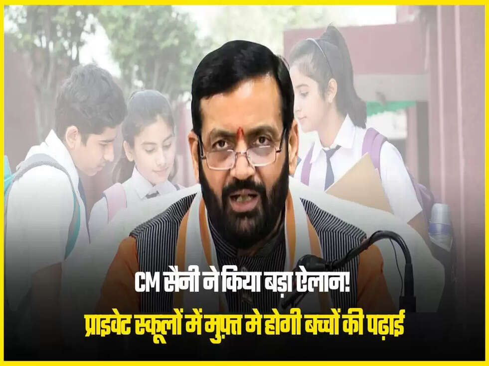 CM सैनी ने किया बड़ा ऐलान! प्राइवेट स्कूलों में मुफ़्त मे होगी बच्चों की पढ़ाई