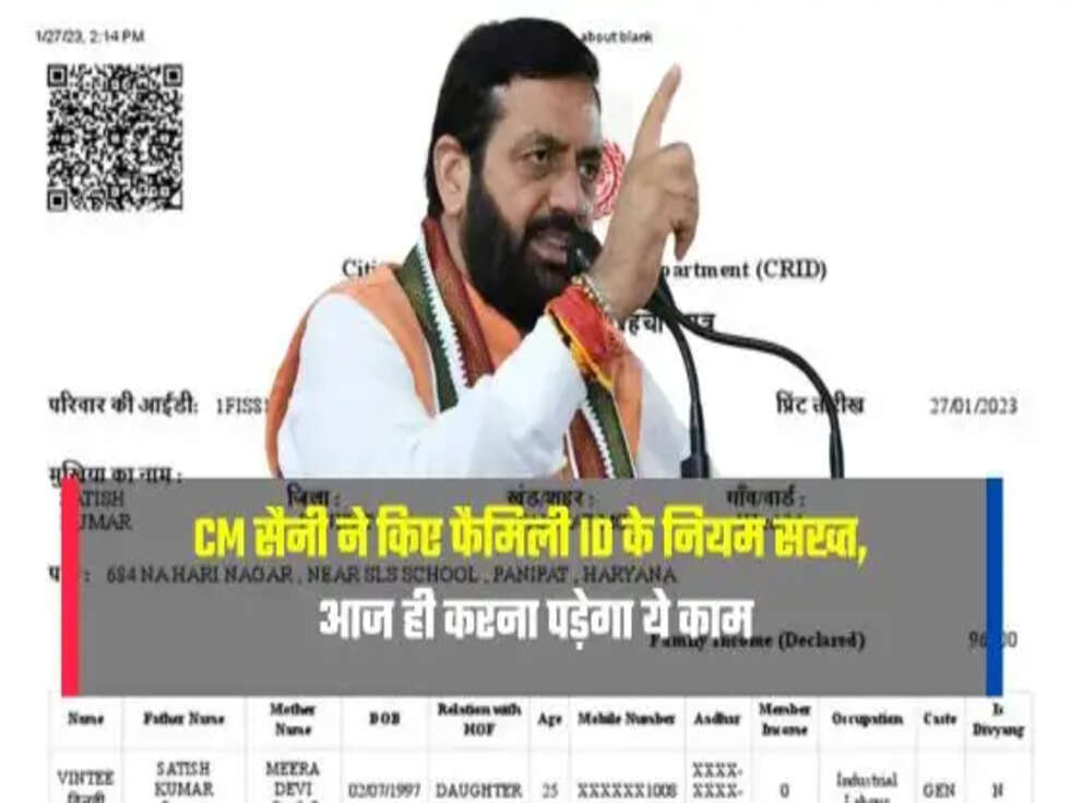 Haryana : CM सैनी ने किए फैमिली ID के नियम सख्त, आज ही करना पड़ेगा ये काम