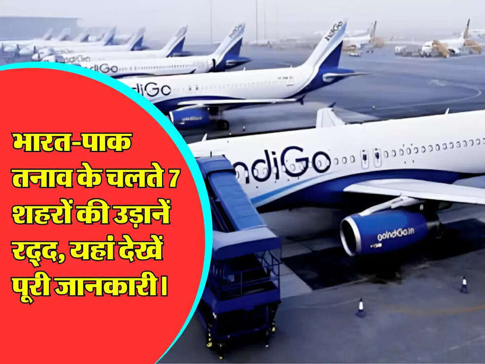 भारत-पाक तनाव के चलते 7 शहरों की उड़ानें रद्द, यहां देखें पूरी जानकारी।