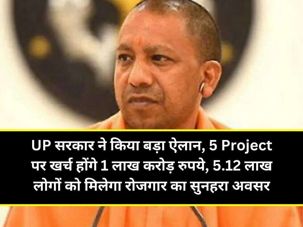 UP सरकार ने किया बड़ा ऐलान, 5 Project पर खर्च होंगे 1  लाख करोड़ रुपये, 5.12 लाख लोगों को मिलेगा रोजगार का सुनहरा अवसर