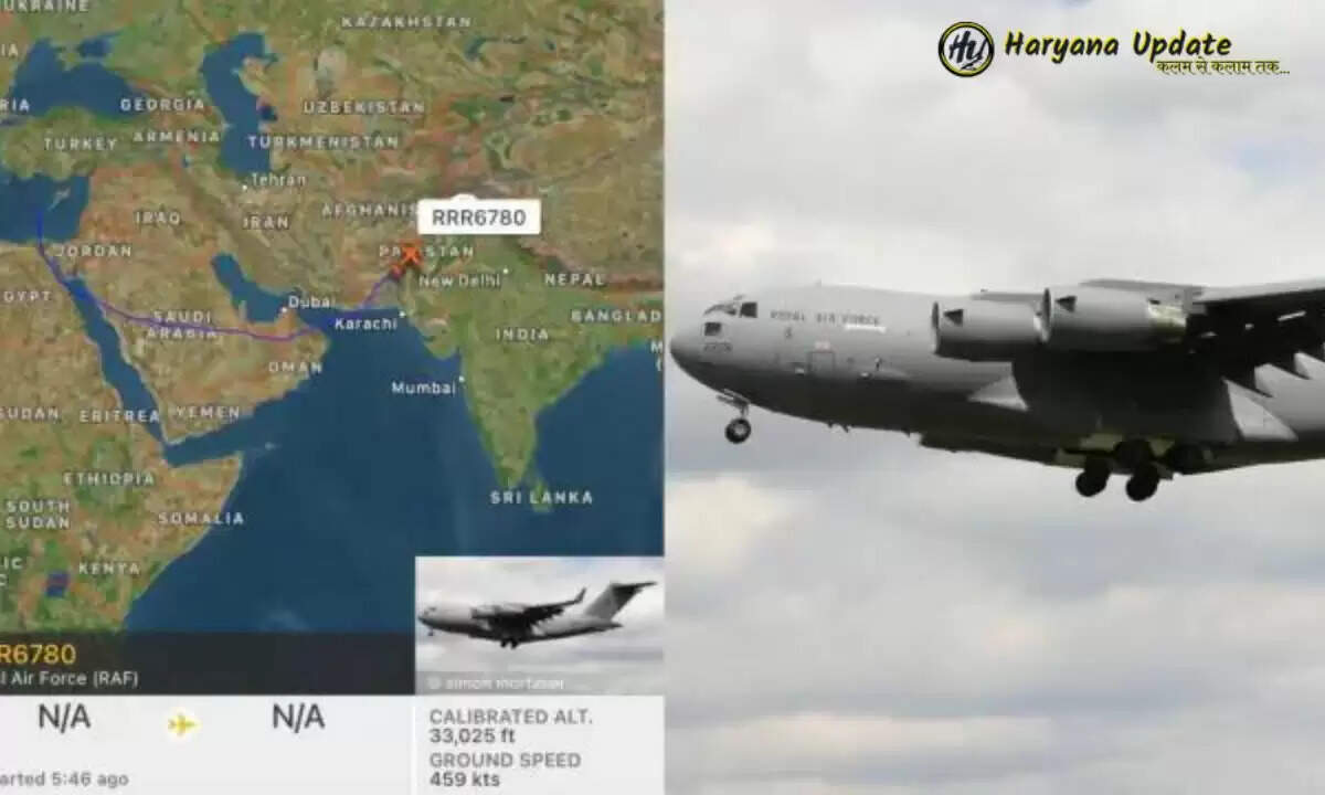 Haryana Update: ब्रिटेन की रॉयल एयर फोर्स (RAF) का एक विमान इस महीने की शुरुआत से ही हर रोज ( Pakistan) पाकिस्तान से होकर यूक्रेन जा रहा है. (flight tracking websites) फ्लाइट ट्रैकिंग वेबसाइटों के डेटा से पता चला है कि (Britain's C-17 Globemaster Romania) ब्रिटेन का C-17 ग्लोबमास्टर रोमानिया से उड़ान भरकर (Pakistani city Rawalpindi) पाकिस्तानी शहर रावलपिंडी में एक (Airbase) एयरबेस पर जाता है.