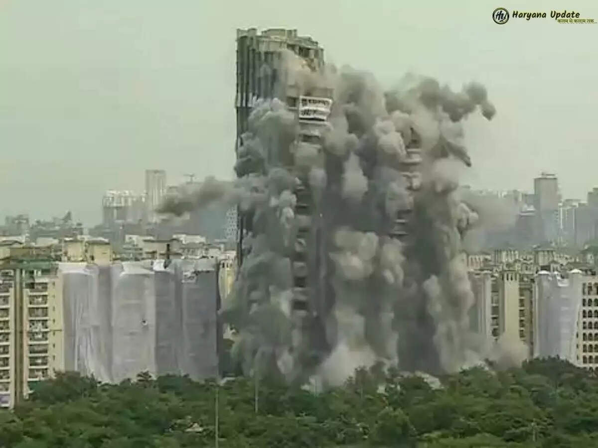 Haryana Update: Supertech Twin Towers: लगभग 100 मीटर ऊंची ये इमारतें दिल्ली की शान कुतुब मीनार (Delhi's Pride Qutub Minar) (73 मीटर) से भी ऊंची थीं। जिसे आधुनिक ‘वाटरफॉल इम्प्लोजन’ तकनीक (Modern 'Waterfall Implosion' Technique) की मदद से कुछ सेकंड में ताश के पत्तों की तरह जमींदोज कर दिया गया। डेमोलिशन के वीडियो (Videos of Demolition) में इमारत के ढहने के साथ ही धूल के बादल उठते दिखाई दे रहे थे।