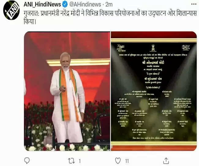 पीएम मोदी ने भरुच के आमोद में सुबह 11 बजे 8000 करोड़ रुपये लागत की विभिन्न परियोजनाओं का लोकार्पण और शिलान्यास किया। इसके बाद वे अहमदाबाद पहुंचेंगे और दोपहर तीन बजकर 15 मिनट पर मोदी शैक्षणिक संकुल का उद्घाटन करेंगे।