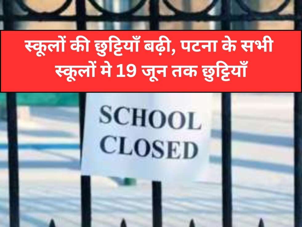 School Closed: स्कूलों की छुट्टियाँ बढ़ी, पटना के सभी स्कूलों मे 19 जून तक छुट्टियाँ, DM ने दिये आदेश