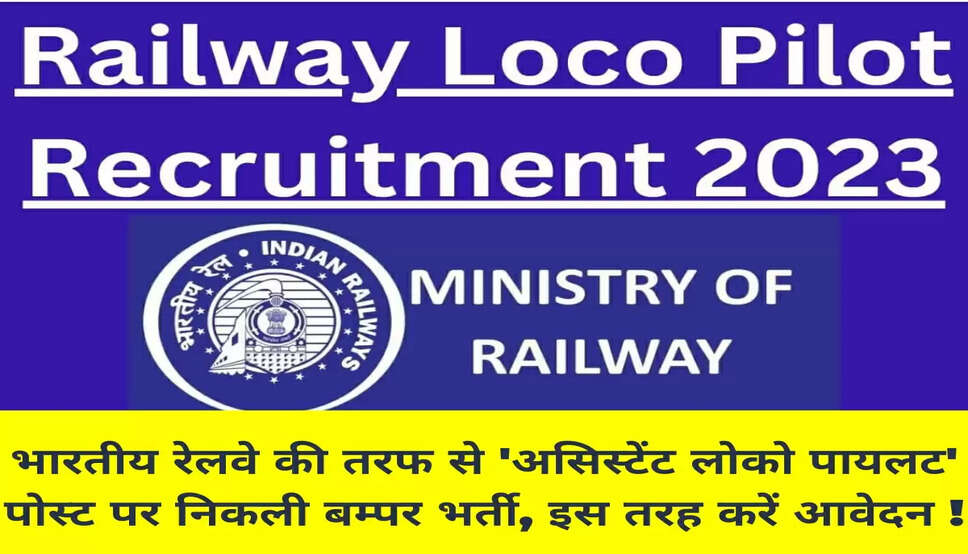 भारतीय रेलवे की तरफ से 'असिस्टेंट लोको पायलट' पोस्ट पर निकली बम्पर भर्ती, इस तरह करें आवेदन !