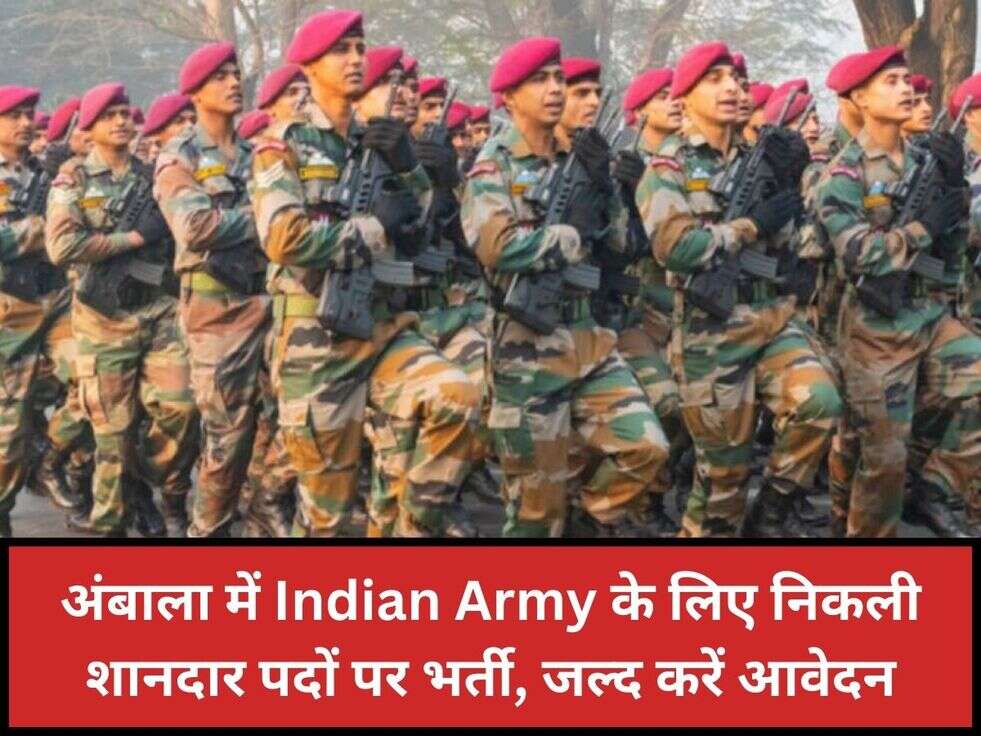 अंबाला में Indian Army के लिए निकली शानदार पदों पर भर्ती, जल्द करें आवेदन