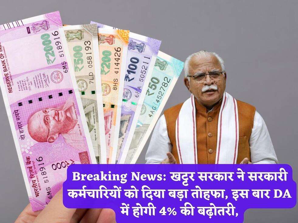 Breaking News: खट्टर सरकार ने सरकारी कर्मचारियों को दिया बड़ा तोहफा, इस बार DA में होगी 4% की बढ़ोतरी,