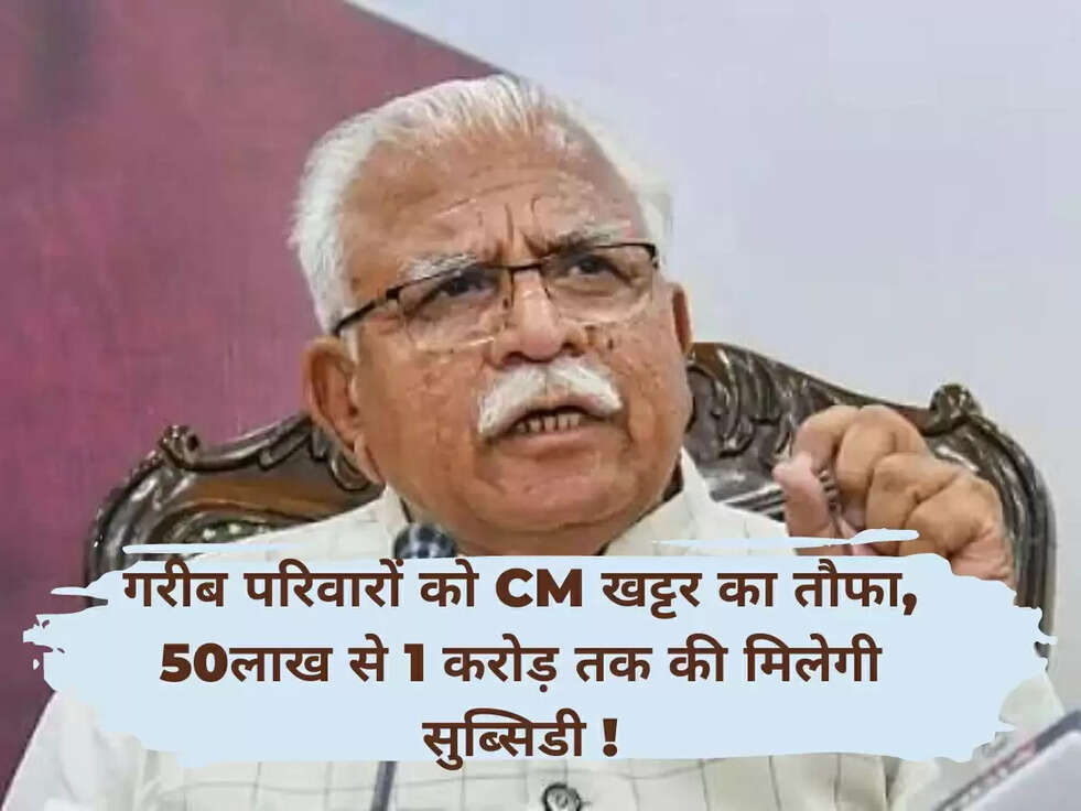 गरीब परिवारों को CM खट्टर का तौफा, 50लाख से 1 करोड़ तक की मिलेगी सुब्सिडी !
