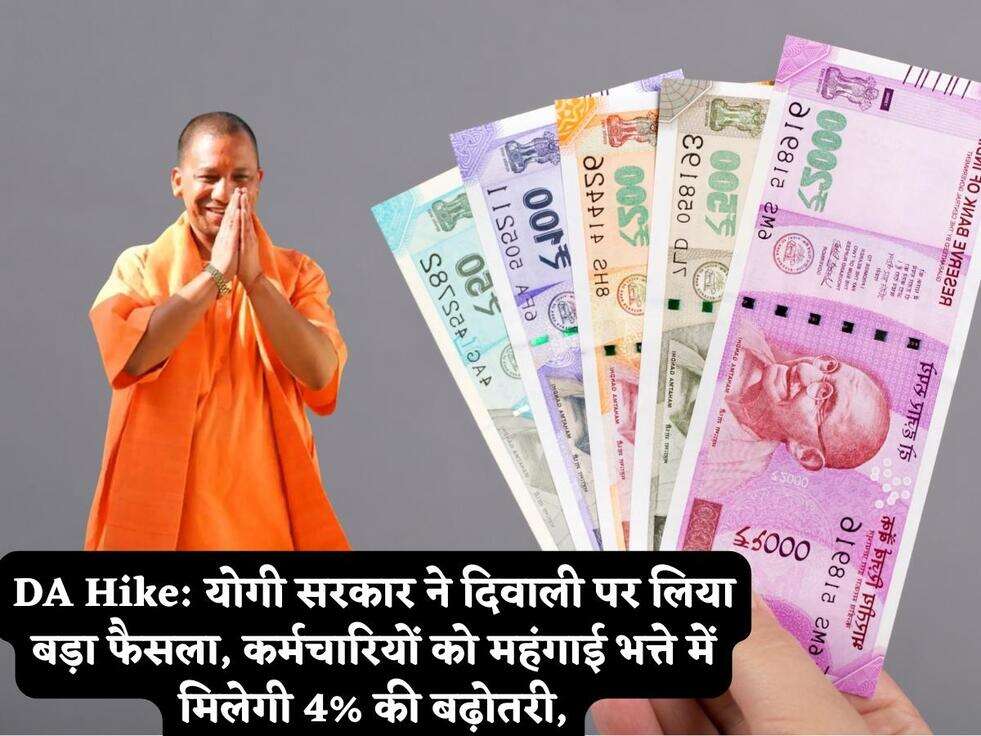 DA Hike: योगी सरकार ने दिवाली पर लिया बड़ा फैसला, कर्मचारियों को महंगाई भत्ते में मिलेगी 4% की बढ़ोतरी,