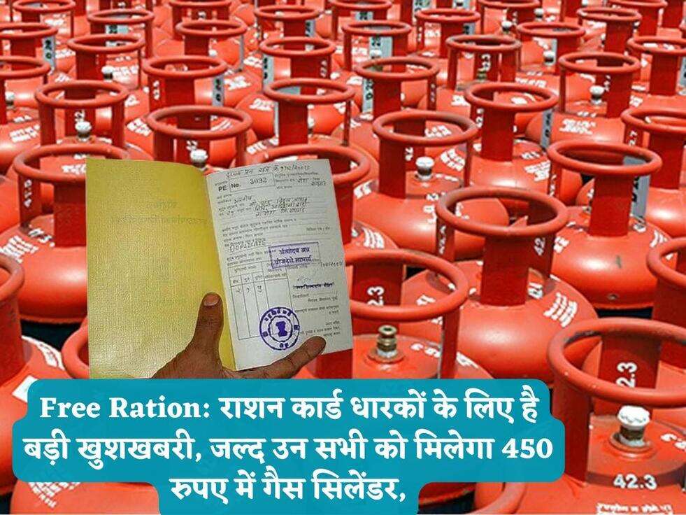 Free Ration: राशन कार्ड धारकों के लिए है बड़ी खुशखबरी, जल्द उन सभी को मिलेगा 450 रुपए में गैस सिलेंडर,