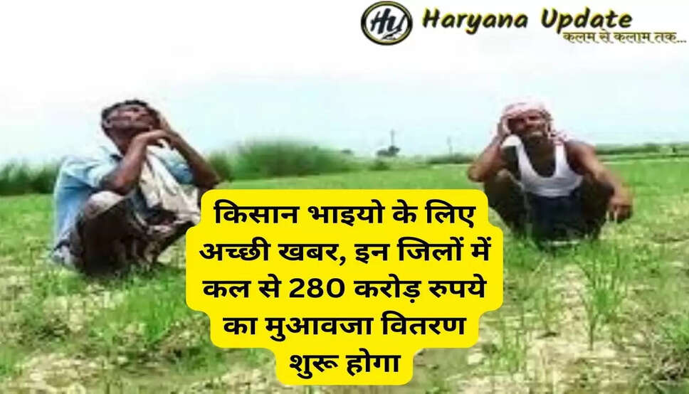 किसान भाइयो के लिए अच्छी खबर, इन जिलों में कल से 280 करोड़ रुपये का मुआवजा वितरण शुरू होगा..