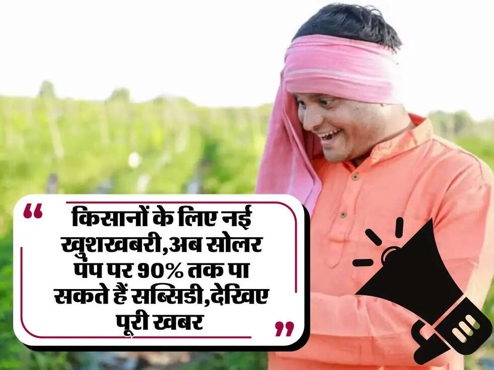किसानों के लिए नई खुशखबरी,अब सोलर पंप पर 90% तक पा सकते हैं सब्सिडी,देखिए पूरी खबर