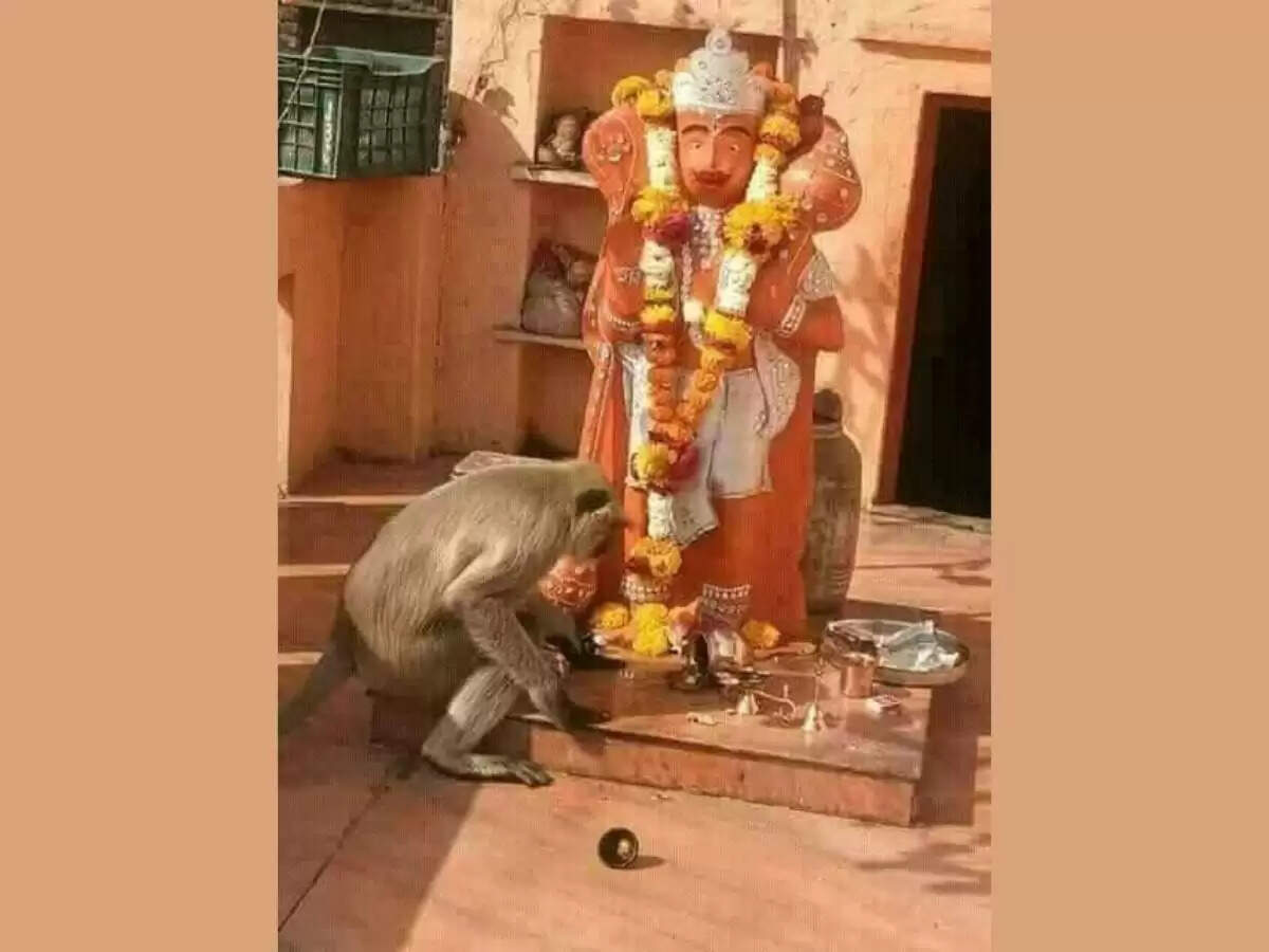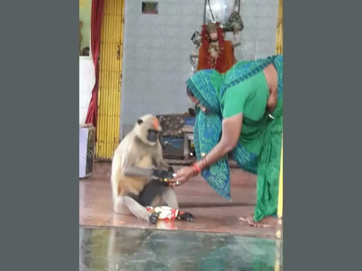 मंदिर की सेवा में है बंदर, भक्तों को देता है आशीर्वाद
