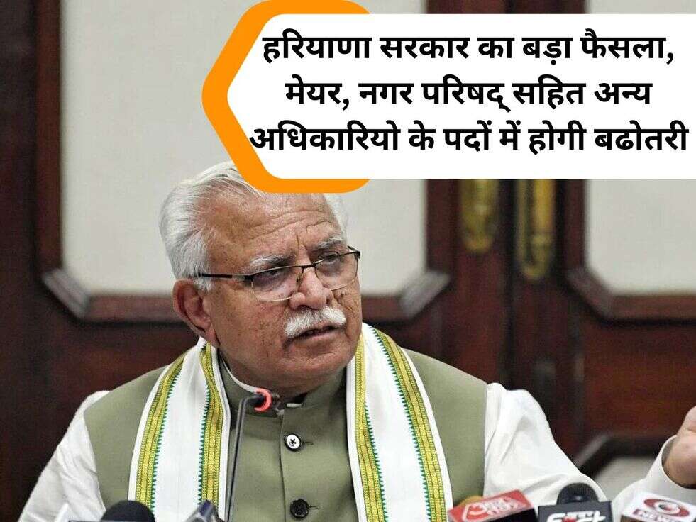 Haryana News: हरियाणा सरकार का बड़ा फैसला, मेयर, नगर परिषद् सहित अन्य अधिकारियो के पदों में होगी बढोतरी