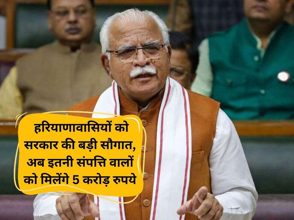 Haryana Update: हरियाणावासियों को सरकार की बड़ी सौगात, अब इतनी संपत्ति वालों को मिलेंगे 5 करोड़ रुपये