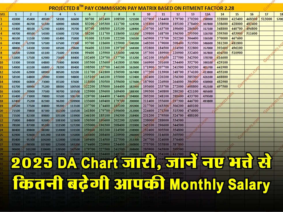 2025 DA Chart जारी, जानें नए भत्ते से कितनी बढ़ेगी आपकी Monthly Salary