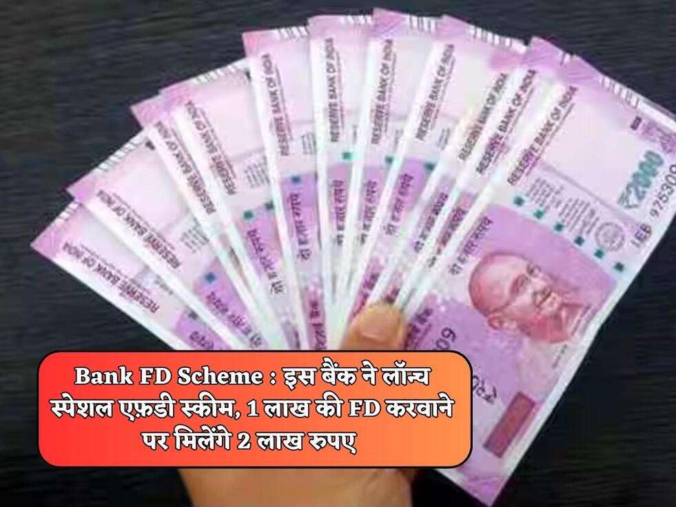 Bank FD Scheme : इस बैंक ने लॉन्च स्पेशल एफ़डी स्कीम, 1 लाख की FD करवाने पर मिलेंगे 2 लाख रुपए