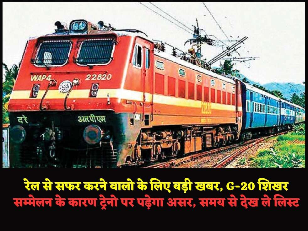 रेल से सफर करने वालो के लिए बड़ी खबर, G-20 शिखर सम्मेलन के कारण ट्रेनो पर पड़ेगा असर, समय से देख ले लिस्ट