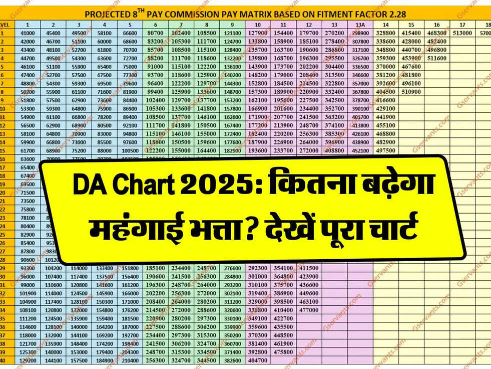 हर छह महीने में महंगाई के आंकड़ों के आधार पर DA में बदलाव किया जाता है और इस बार भी 2025 के लिए नया DA चार्ट तैयार किया जा चुका है।
