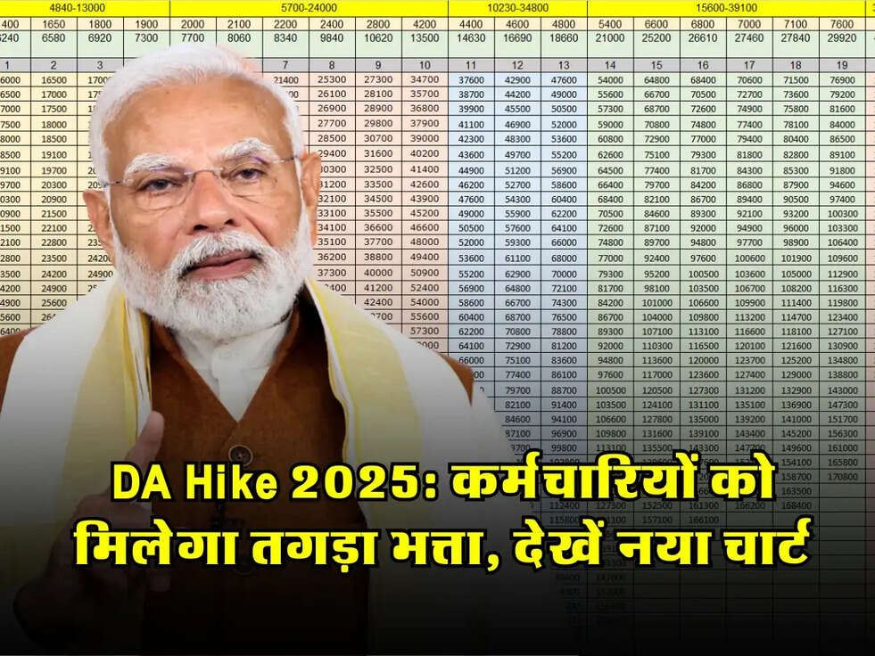 DA Hike 2025: कर्मचारियों को मिलेगा तगड़ा भत्ता, देखें नया चार्ट