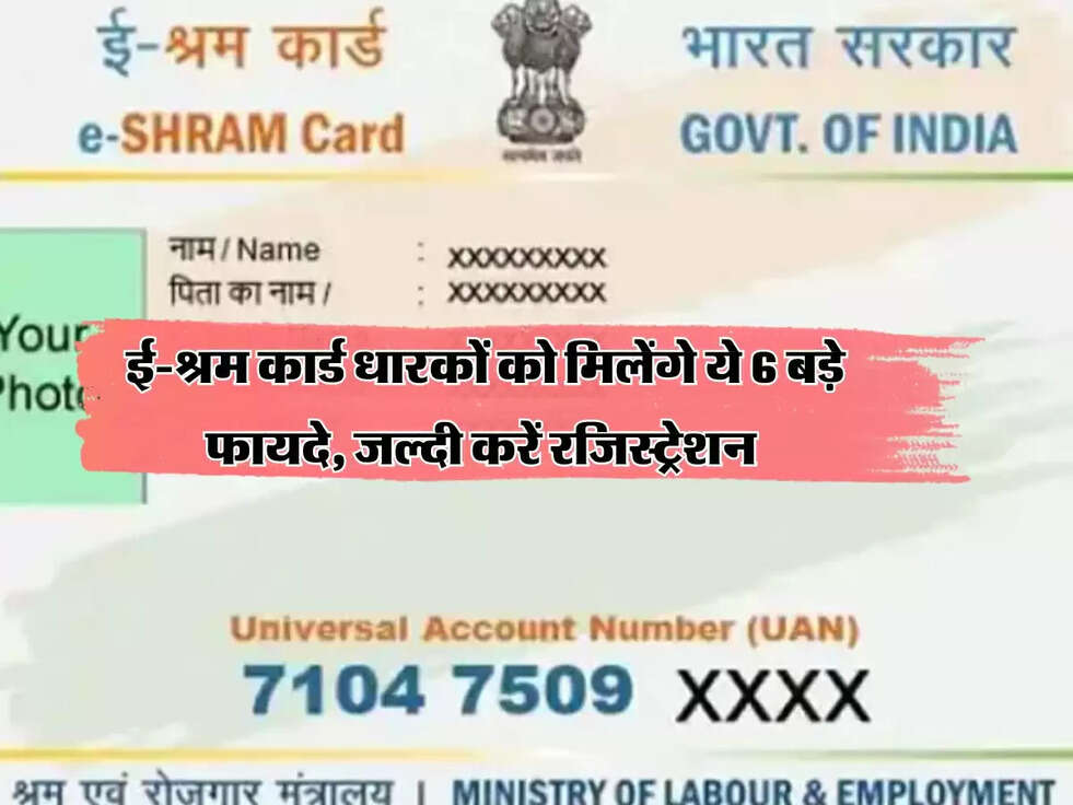 E-Shram Card 2025: असंगठित क्षेत्र के मजदूरों के लिए बड़ी खुशखबरी, ई-श्रम कार्ड रजिस्ट्रेशन कराने वालों को मिलेंगे ये 6 जबरदस्त फायदे। जानिए क्या है शर्तें और लाभ। नीचे पढ़ें पूरी डिटेल।