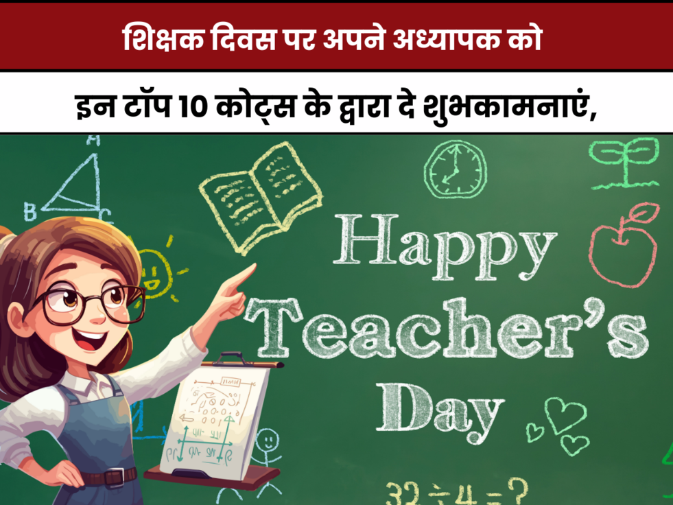 ऐसे में यदि आप भी अपनों को शिक्षक दिवस की हार्दिक शुभकामनाएं देना चाहते हैं तो हम आपके लिए सबसे बेस्ट टीचर्स डे कोट्स लेकर आए हैं। जिनकी मदद से आप अपनों को शिक्षक दिवस की शुभकामनाएं दे सकते हैं। आइए जानते हैं हैप्पी टीचर्स डे के टॉप 10 कोट्स...