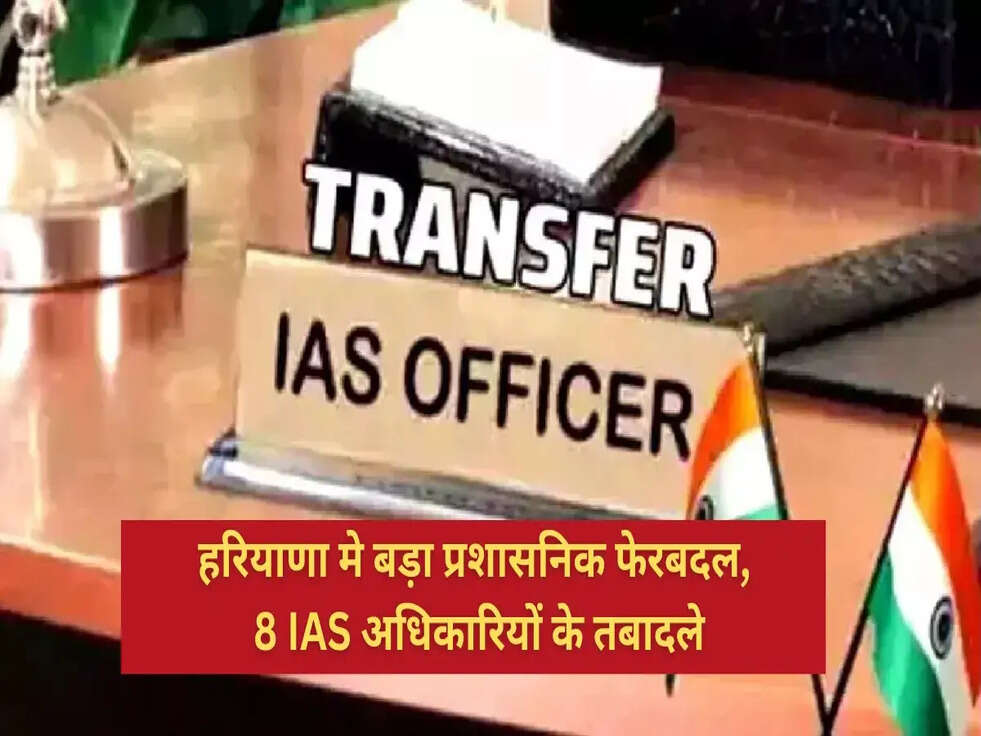 Haryana IAS Transfer: हरियाणा मे बड़ा प्रशासनिक फेरबदल, 8 IAS अधिकारियों के तबादले
