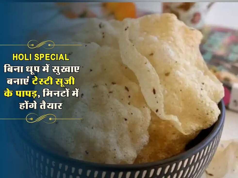 HOLI SPECIAL : बिना धूप में सुखाए बनाएं टेस्टी सूजी के पापड़, मिनटों में होंगे तैयार