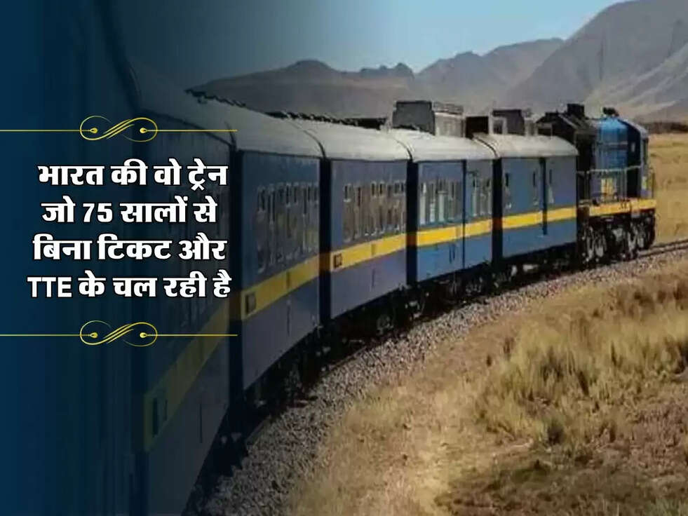 Indian Railways : भारत में एक ऐसी ट्रेन है, जो पिछले 75 सालों से यात्रियों को बिना किसी टिकट और TTE के यात्रा करवा रही है। यह ट्रेन एक विशेष उद्देश्य को ध्यान में रखते हुए चलाई जा रही है, जिसमें यात्रियों से कोई शुल्क नहीं लिया जाता है। अगर आप भी इस ट्रेन के बारे में जानना चाहते हैं, तो जानिए इसे क्यों और कैसे चलाया जा रहा है, पूरी जानकारी के लिए नीचे पढ़ें पूरी डिटेल।