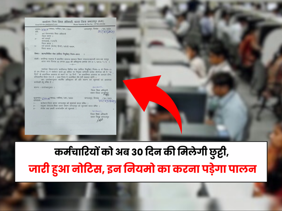 कर्मचारियों को राज्य सरकार ने दी बड़ी सौगात, अब 30 दिन की मिलेगी छुट्टी, जारी हुआ नोटिस, इन नियमो का करना पड़ेगा पालन