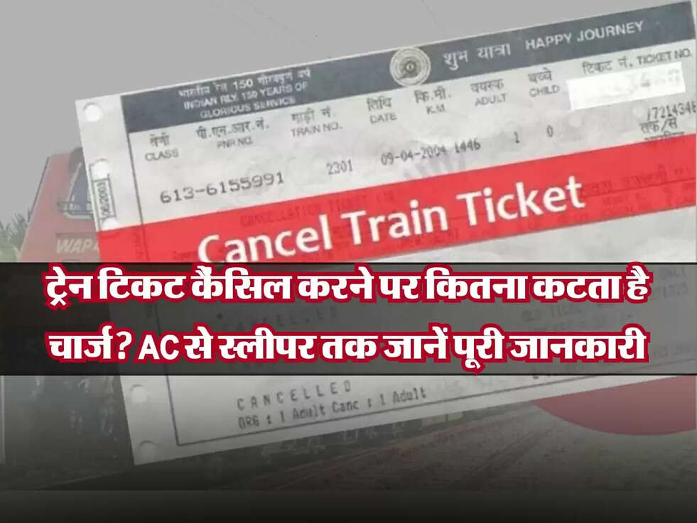 ट्रेन टिकट कैंसिल कराने पर AC, स्लीपर और जनरल क्लास में कितना चार्ज कटता है? जानें पूरी जानकारी और बचें अनावश्यक खर्च से। भारतीय रेलवे के कैंसिलेशन नियमों को समझें।